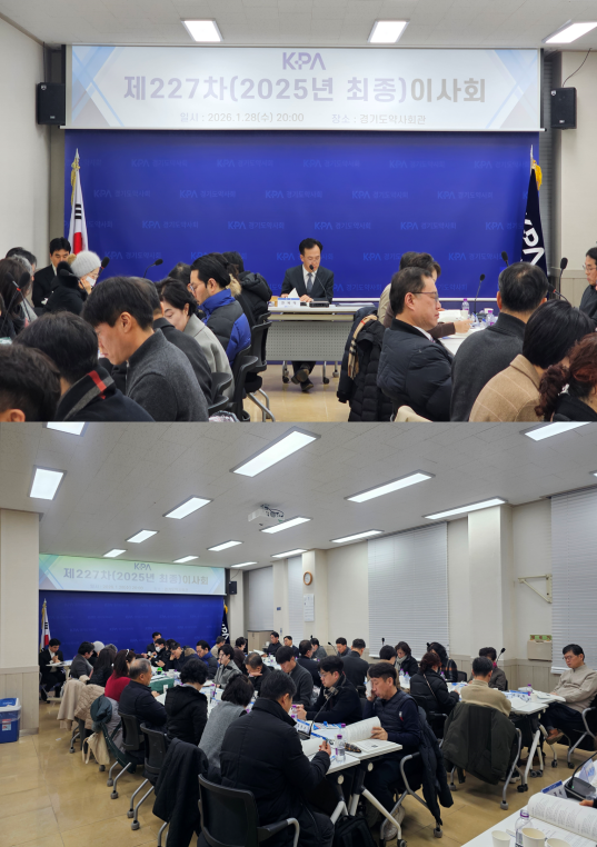 °æ±âµµ¾à»çȸ(ȸÀå ¿¬Á¦´ö)°¡ 1¿ù 28ÀÏ °æ±âµµ¾à»çȸ°ü¿¡¼ Á¦227Â÷ 2025³â ÃÖÁ¾ÀÌ»çȸ¸¦ °³ÃÖÇÏ¿© »óÁ¤µÈ ¾È°ÇÀ» ½ÉÀÇ¡¤ÀǰáÇÏ´Â ÇÑÆí, ¾à»çȸ ÁÖ¿ä Çö¾È¿¡ ´ëÇØ ½ÉµµÀÖ´Â ³íÀǸ¦ ÁøÇàÇß´Ù.
